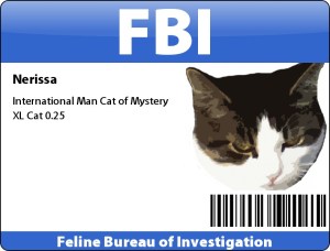 I joined the FBI! That's the FELINE Bureau of Investigation for those of you who don't know. Got my badge from Nellie and Cosmo from over on the Cat from Hell and everything.