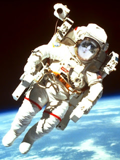 Remember this? 'Cause I was havin' such a hard time, gettin' astronauts to read my blog from the International Space Station and all, my pal Sammy from onespoiledcat got me my very own space suit so that I could visit the Space Station myself!
